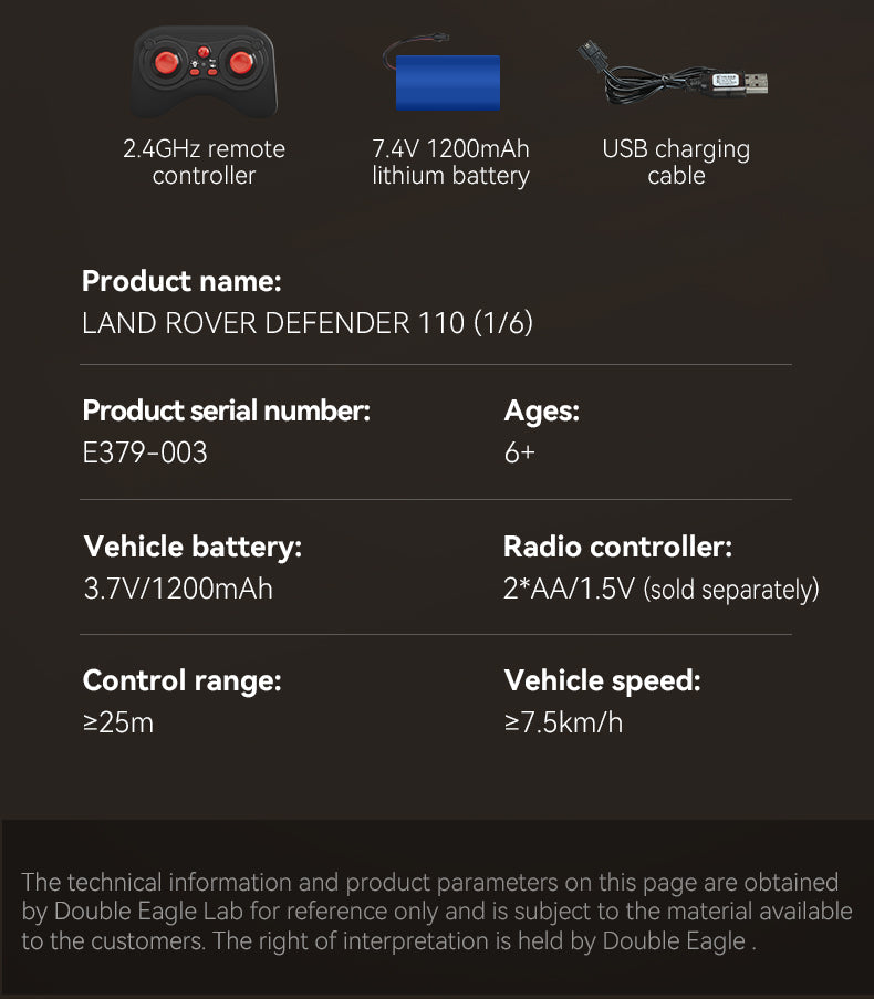 DOUBLE E Land Rover Defender RC 1/6 Big Foot E379