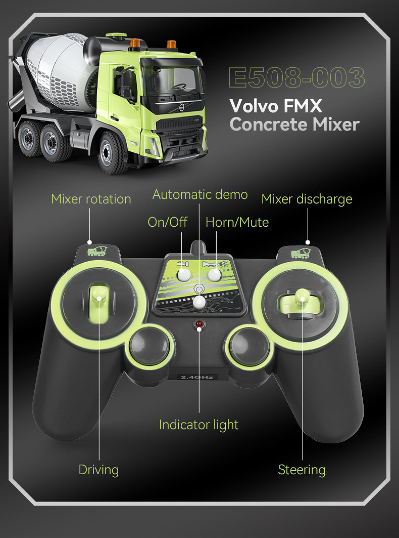 DOUBLE E RC Licensed Volvo FMX Concrete Mixer 1/20 E508
