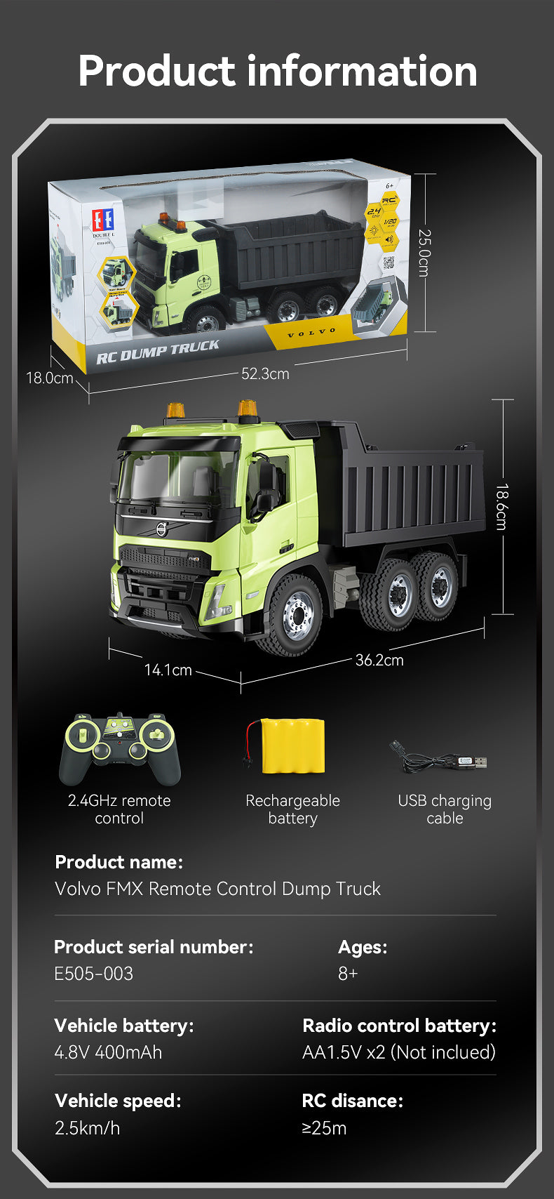 DOUBLE E RC Licensed Volvo FMX Dump Truck 1/20 E505