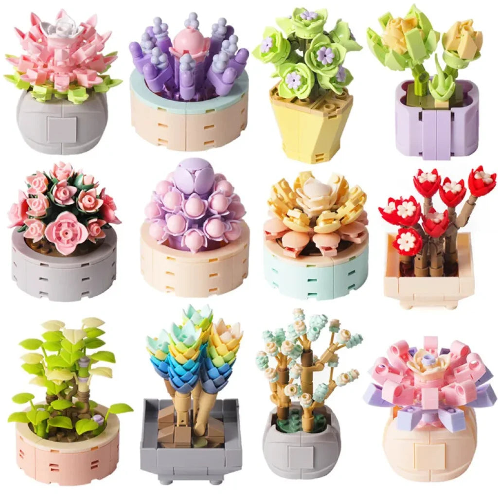 Flower Building Blocks Toys Succulent Potted DIY Plants