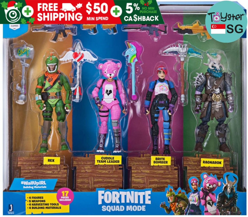 - Ragnarok, Rex, Cuddle Team Leader, and Brite Bomber 4" Action figures - inspired by four of the most popular skins from Epic Games' Fortnite