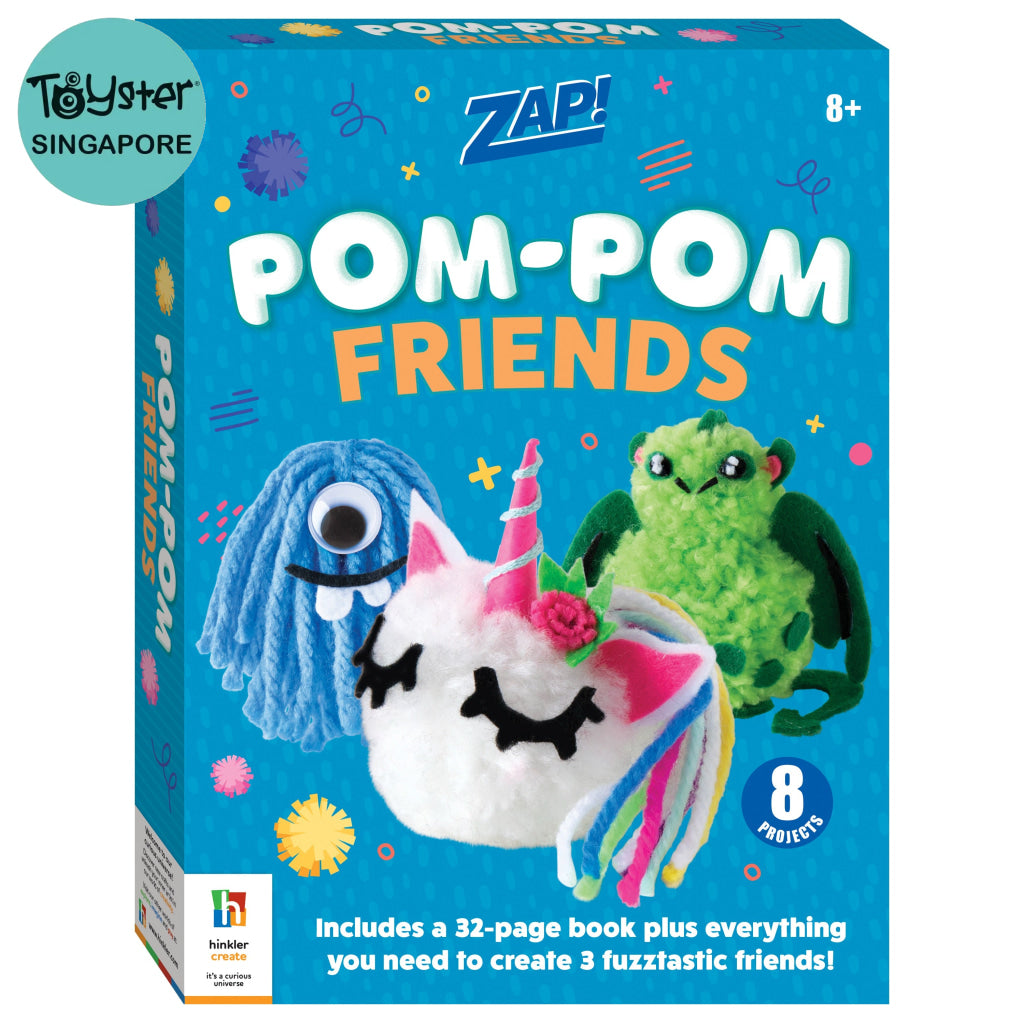 Learn to make a puppy, kitten, fox, hedgehog and badger, as well as the magical creatures of a dragon, monster and unicorn. With Zap! Extra Pom-Pom Friends, anyone can create their own cute pom-pom pals!