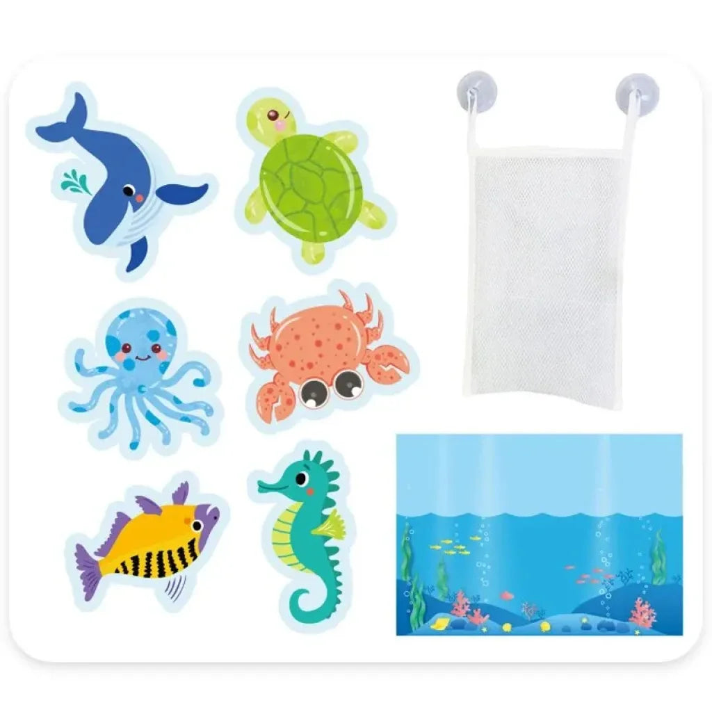 Quantity: 6 Pcs Marine animals + suction nets + stickers