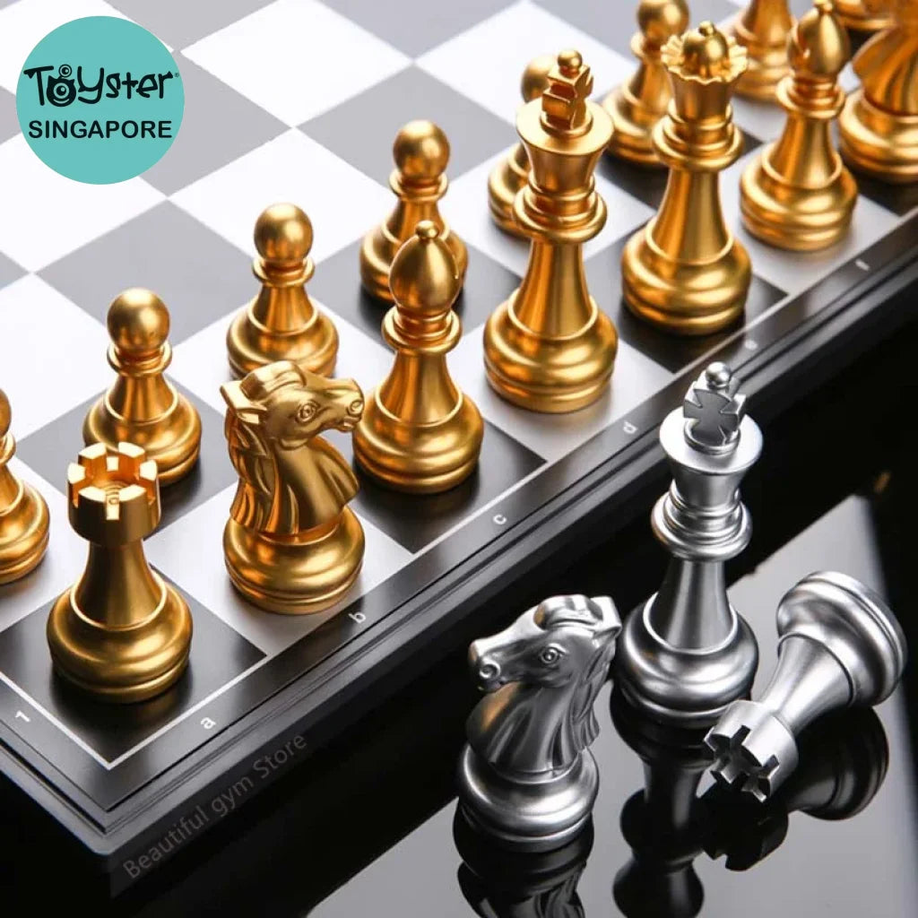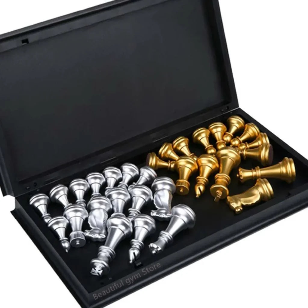 Medieval Chess Set With High Quality Magnetic Chessboard 32 Gold Silver Chess Pieces