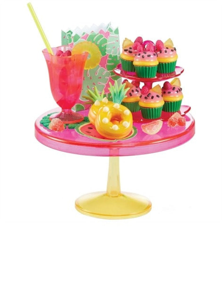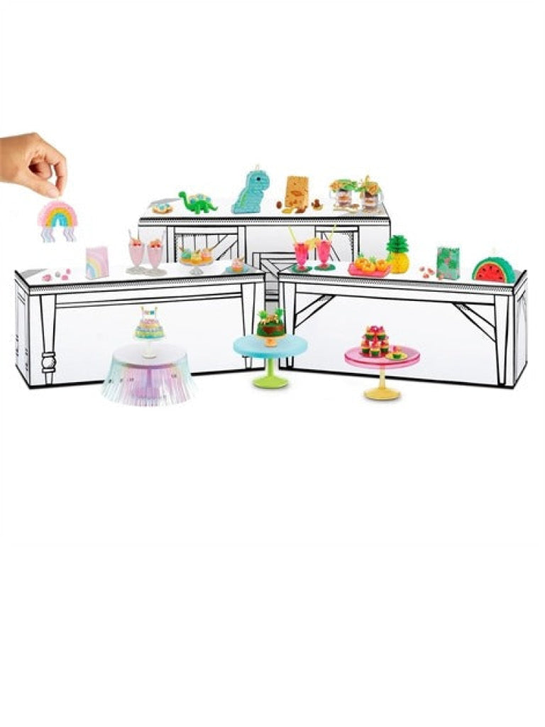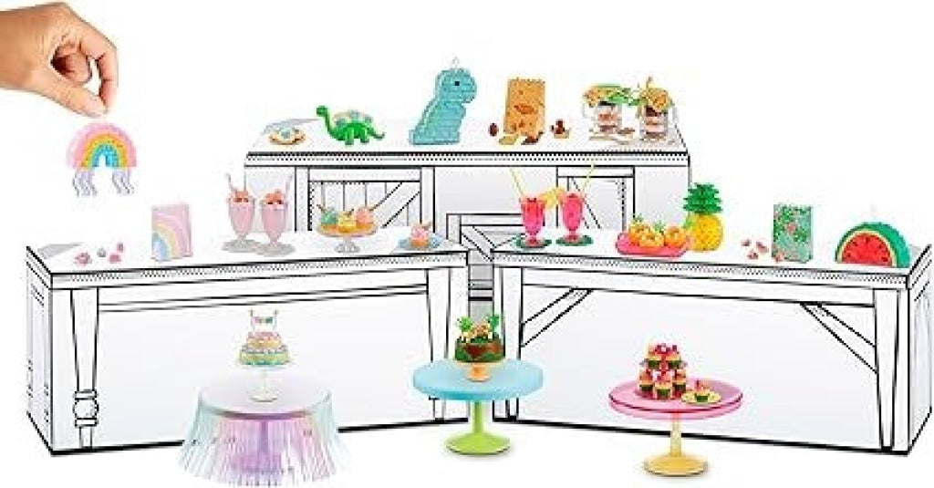 Get ready to throw the ultimate party with the MGA's Miniverse: Make It Mini – Birthday Collectible Assortment! This exciting series features 3 party themes — Dino, Tropical and Rainbow — with 12 minis to collect, create and display! From mini party drinks and cakes to mini pinatas, the party never stops in the Miniverse! Follow the recipe to make your mini. Once you finish, set your replica in UV light until it hardens. Once it sets, you'll have a collectible ready to display! With a surprise to unbox in every pack, use the included collector's guide to track and gather your party supplies. Make your party unforgettable, with realistic food and decorations to create the ultimate celebration! There are 3 unique tables to collect, perfect for showcasing your collection. With fun replica novelty items to discover, you can make each celebration unique!