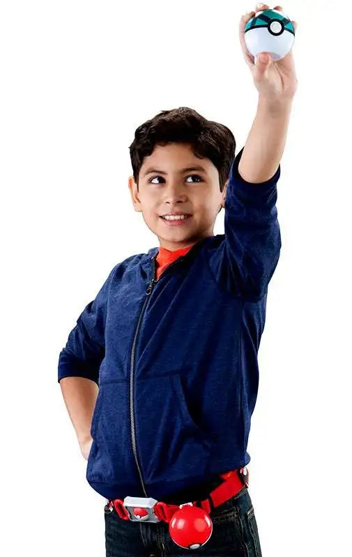 The set includes one adjustable belt with a Poké Ball design, one Poké Ball, one Quick Ball and one 2-inch figure.