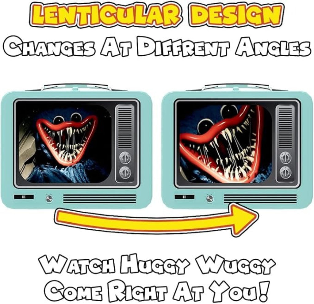 LUNCHBOX BUNDLE: Includes 1 Lenticular Lunchbox, 1 Special Edition Grey-Stitch Huggy Wuggy Plush, 1 Silver Metallic Huggy Wuggy Figure, and 1 Poster.
