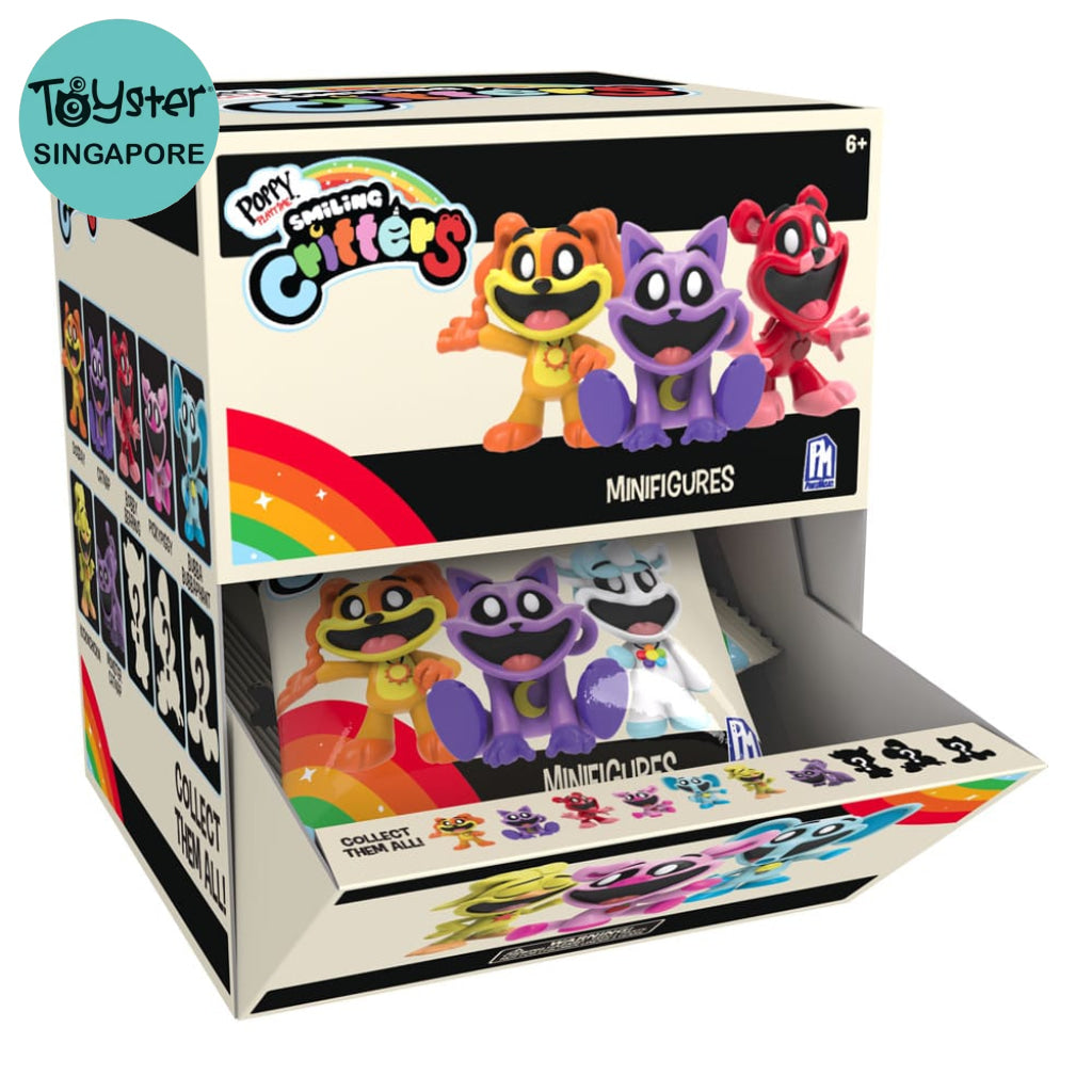 What time is it? It's Poppy Playtime! Your favourite figures are just waiting to be discovered and collected by you. Each S3, Smiling Critters blind bag contains one of ten minifigures, including: Catnap, Dogday, Pickypig, Bubba Bubbaphant, Catnap (Monster), Craftycorn, Hoppy Hopscotch, Kickinchickin, Bobby Bearhug, Catnap (Plushie).