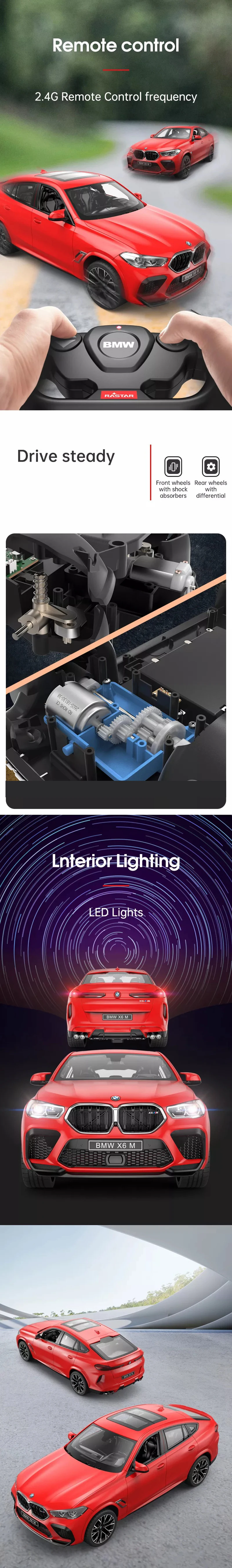 Rastar BMW X6 M Series RC Car 1:14 Scale 2.4G Remote Control Car Toy Model LED Lights Automobile Gift For Kids Adults