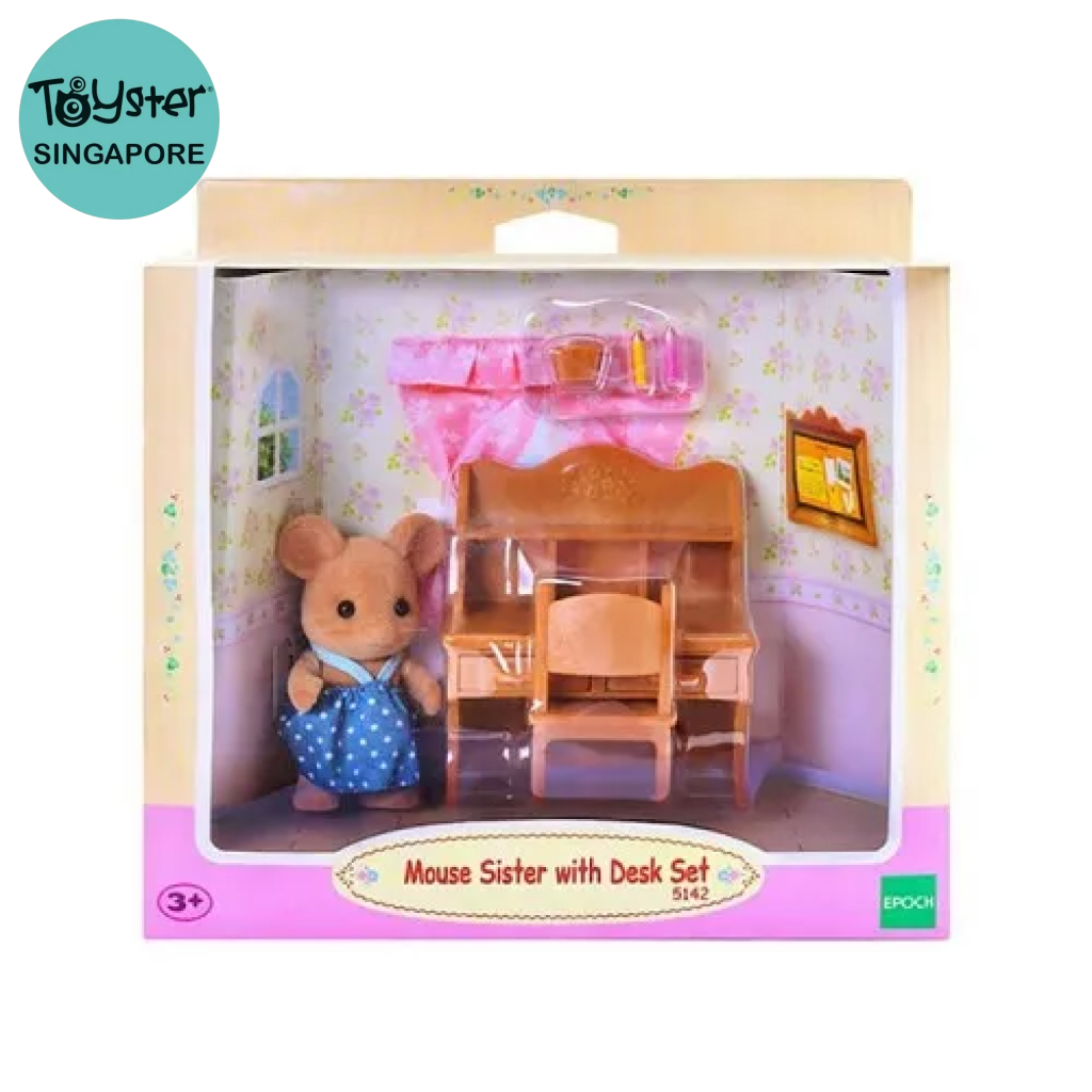Includes 1 figure mouse, removable fabric clothing, desk (moveable draws), chair, 2x pencils and pencil holder.