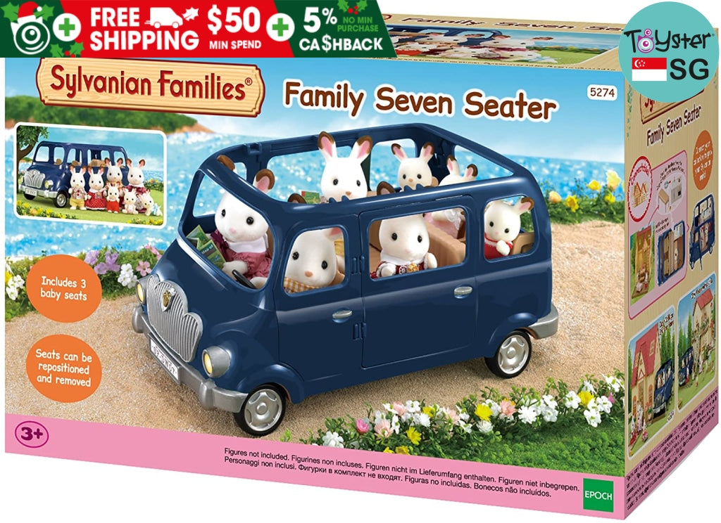 Blue Sylvanian Families Car This car can fit the whole family. The second row is moveable to enable change in seating orientation. Good for stimulating imaginative role-play in children. Bluebell Seven Seater can turn into a camping car if you put the furniture of Cosy Cottage Starter Home inside. Suitable for ages 3 years and up