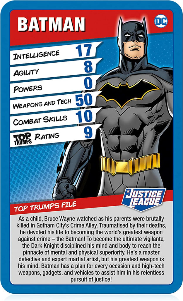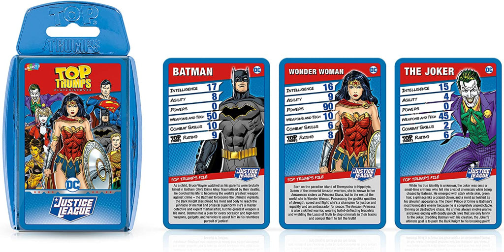 Rediscover DC’s massive Justice League universe in this brand new edition of Top Trumps. Featuring officially licensed artwork and detailed character bios for thirty of the biggest and best heroes and villains, refresh your memory on one of the most critically adored comic-book franchises in history - and learn a few new facts at the same time.