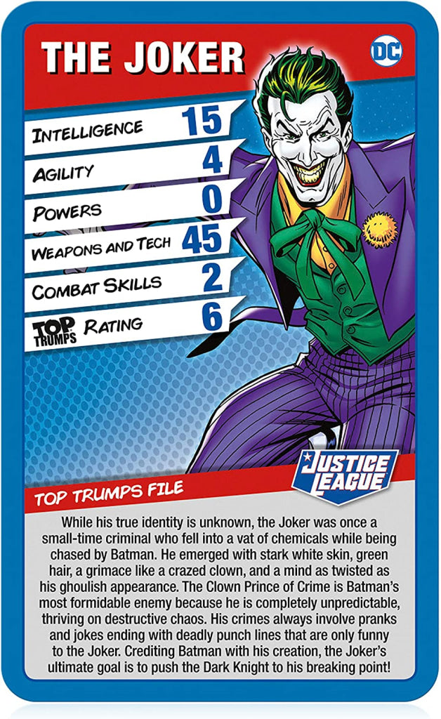 - With heroes like Aquaman, Wonder Woman and Supergirl, and villains such as Joker, Riddler and Clayface, you must use your knowledge of the DC universe to defeat your foes and claim every character card for your own.