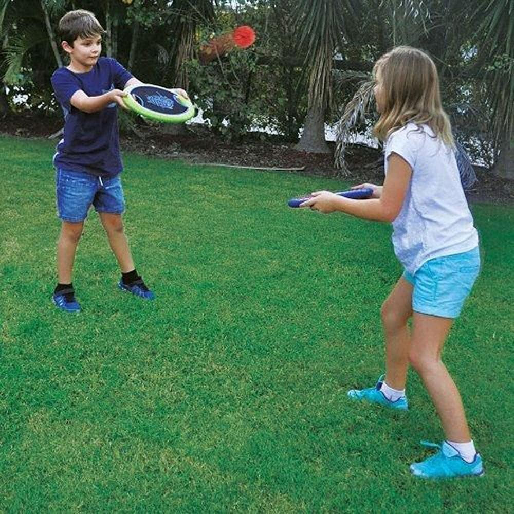 - Kids can play paddle ball, Spring ball tennis or use the big round paddle as a flying disc