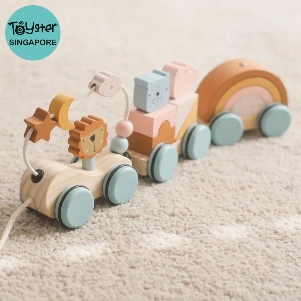 Wooden Animal Pulling Block Stars Moon Surround Train
