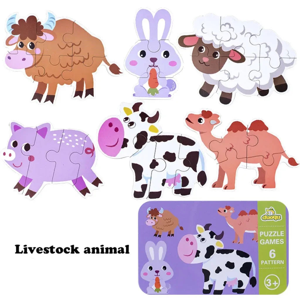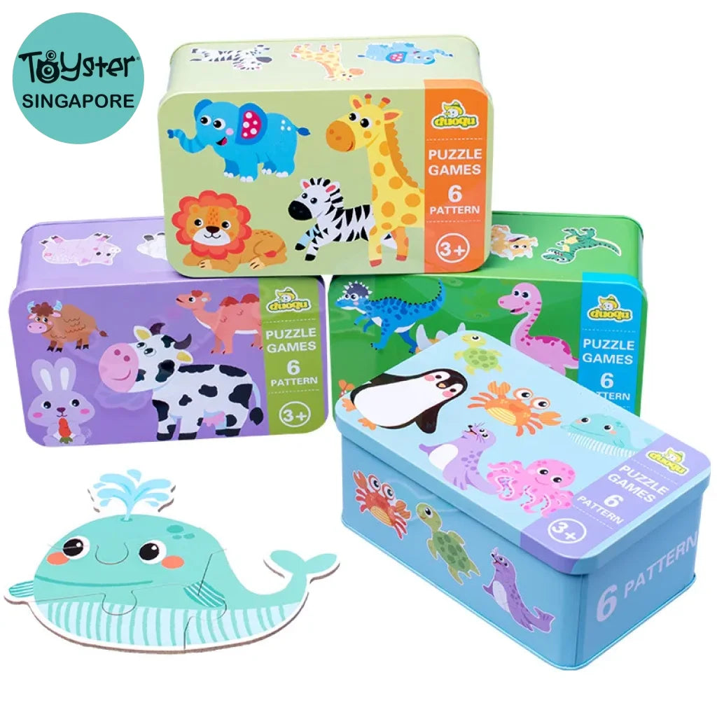 Children's Creative Iron Box Puzzle Kindergarten Baby Early Education Cartoon Animal Traffic Wooden Puzzle Interactive Game