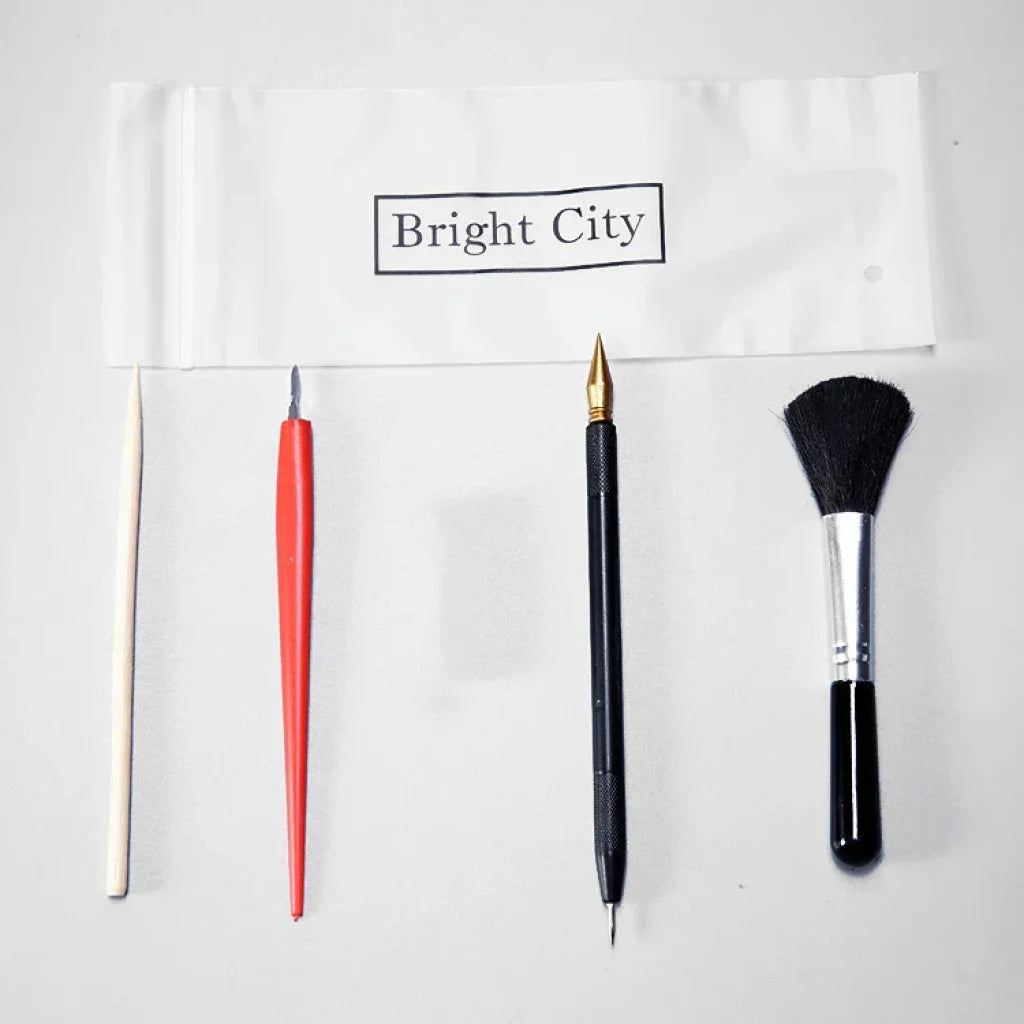 Packaging: Envelope paper shell packaging, one inside two, one with a pattern, one all black for DIY