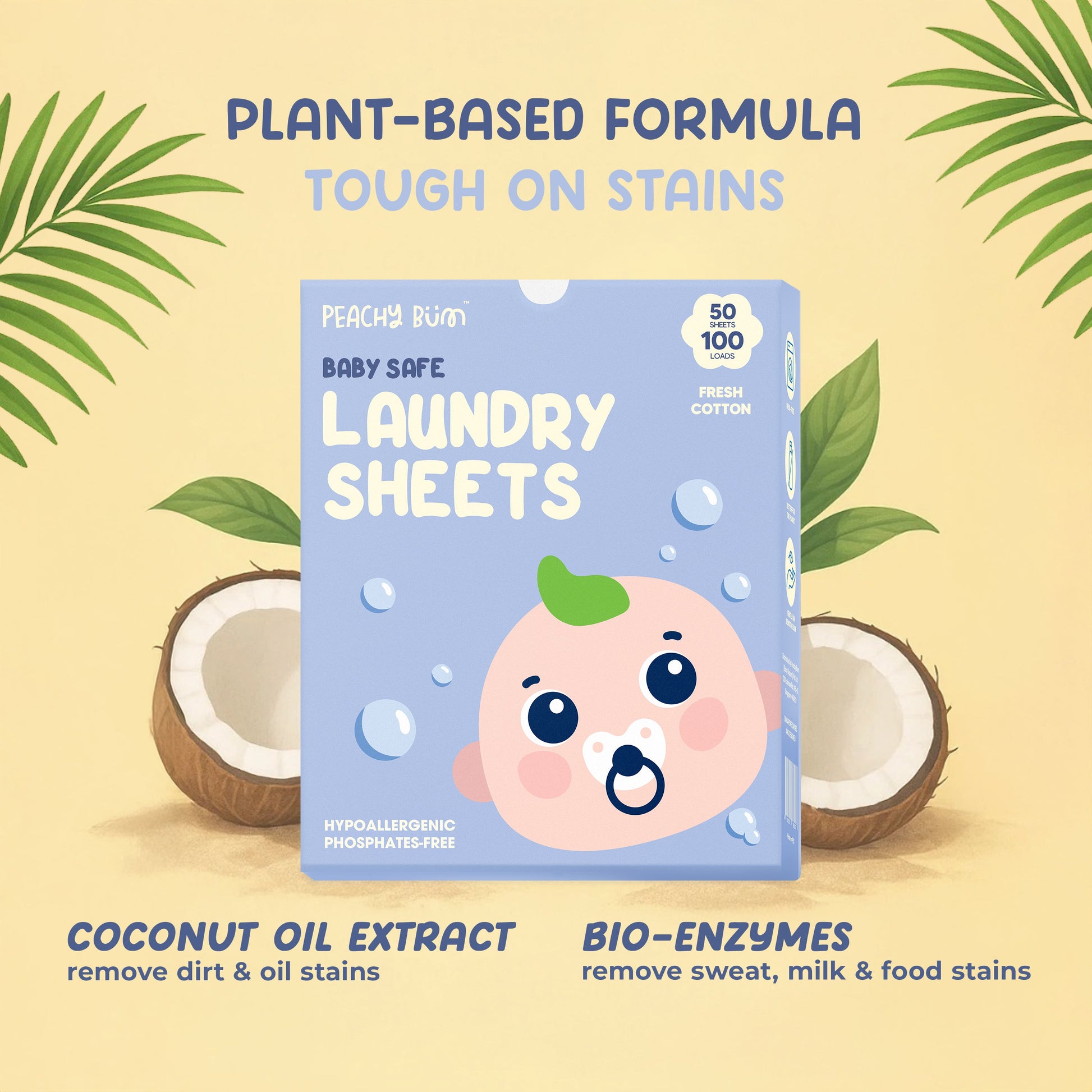 Our baby safe laundry detergent sheets are ultra-gentle on sensitive skin, while packing a powerful punch of bio-enzymes to fight stains.