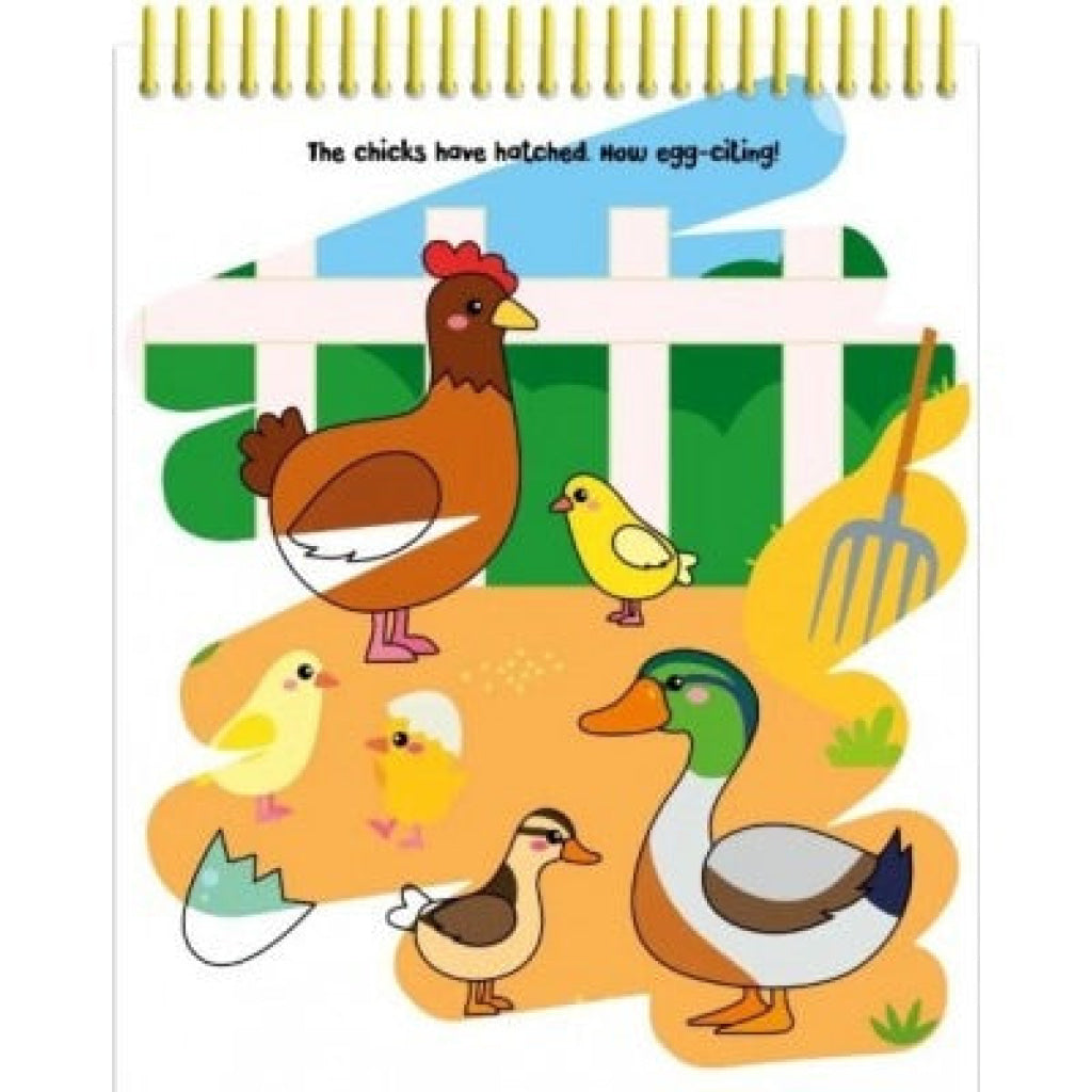 Add water to the special pen that is included with the book and use it to bring the cute baby animals and scenes to life. Then as each page dries, watch the ink disappear, just like magic!