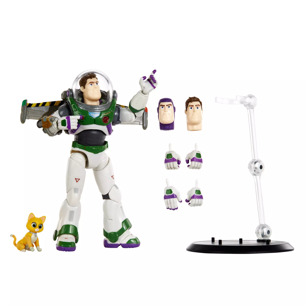 Just like the space hero himself, this Buzz Lightyear Pixar Spotlight Series Action Figure goes above and beyond the expected. Inspired by Lightyear and created with the utmost attention to detail and authenticity, it was designed with insights from director Angus MacLane. This fully articulated premium action figure comes with a helmet that opens, three swappable heads, three sets of hands, detachable jetpack, laser gauntlet, and, of course, Buzz's best buddy Sox. Designed for the collector and super fan alike, this Buzz Lightyear action figure comes with a stand and C-clip so he can strike numerous poses, each one more heroic than the last.