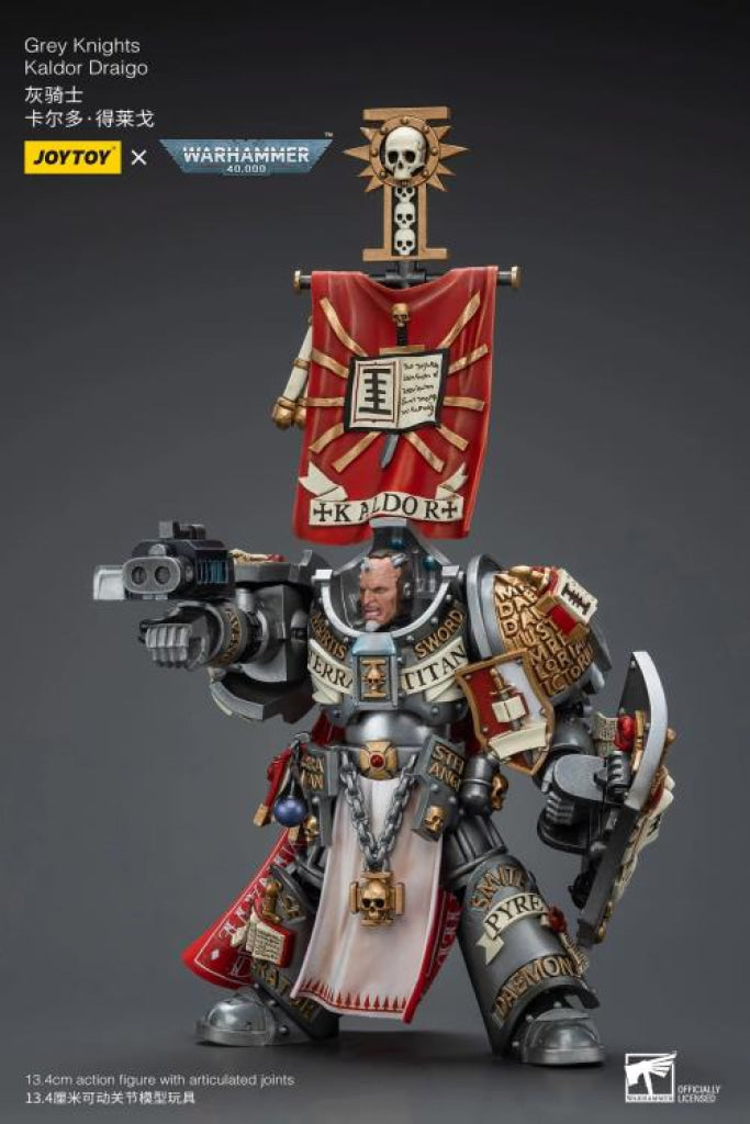 The JoyToy Warhammer 40K Grey Knights Kaldor Draigo action figure is an intricately designed collectible figure inspired by the Grey Knights, an elite Space Marine chapter in the Warhammer 40,000 universe. This figure showcases meticulous detailing, capturing the iconic armor and weaponry of the Grey Knights. A must-have for Warhammer 40K enthusiasts and collectors, this action figure allows fans to display the heroic and formidable presence of the Grey Knights in their collection, embodying the eternal defenders against the forces of Chaos in the grim darkness of the far future.