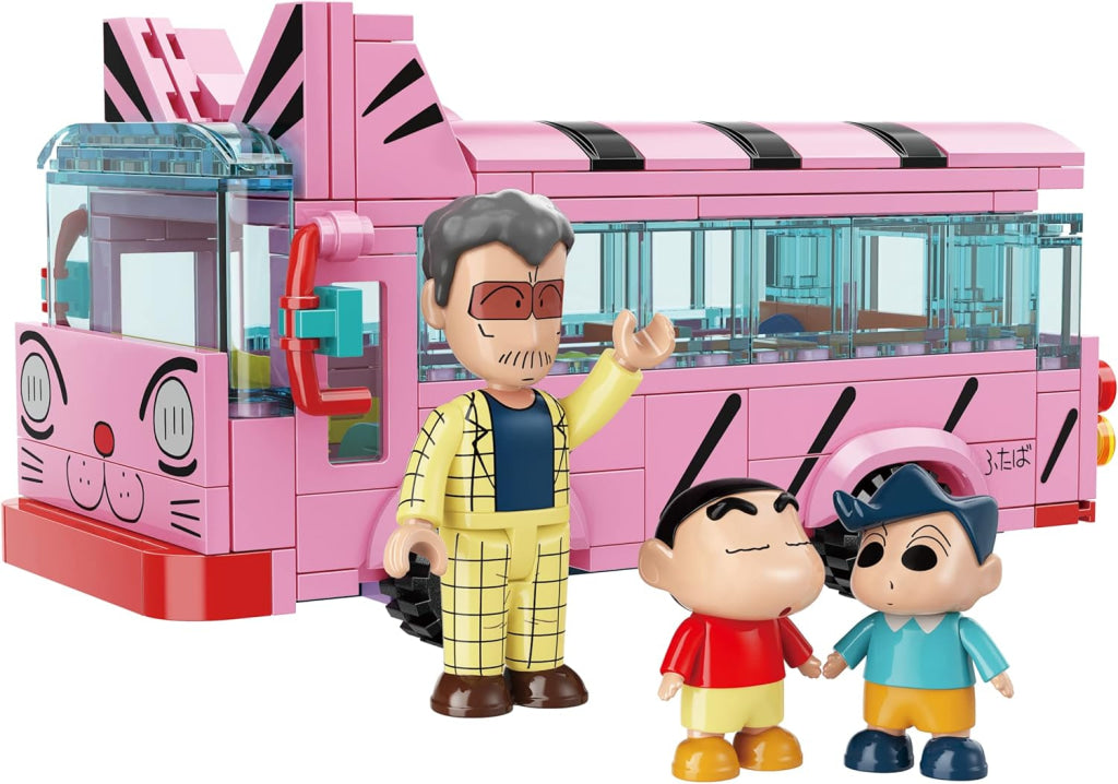 - The Cat-liked school bus suit brings popular characters into the real world. It contains highly interactive classic character dolls. This modular building toy set can be assembled to experience your favorite classic characters in Shinchan animation, which is very suitable for team competitions and cultivating children's problem-solving skills and creativity.