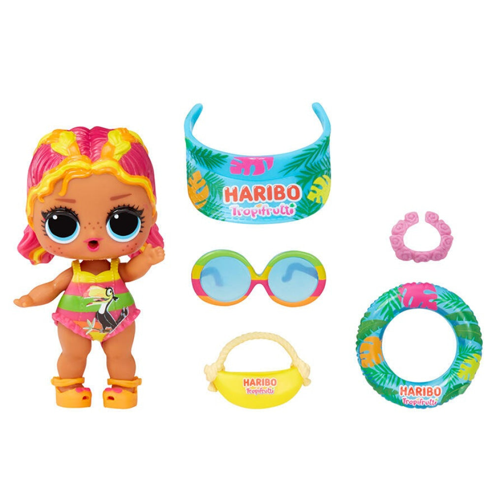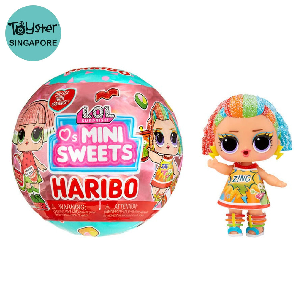 Introducing L.O.L. Surprise! Loves Mini Sweets X Haribo! L.O.L. Surprise! has partnered with the iconic Haribo to bring you dolls inspired by your favorite Haribo sweets. Each doll has a unique style that’s tastier than ever to match each treat. Find nostalgic brands like Haribo Rotella, Sour Streamers, Tropifrutti, Watermelon, Alphabet Letters, Berries, Chamallows, Konfekt, and Pico-Balla! Feed your doll for a water surprise? Will she spit, cry, or tinkle? Each L.O.L. Surprise! Loves Mini Sweets X Haribo doll includes 7 surprises to unbox: (1) LOL Surprise Loves Mini Sweets Haribo Doll; (2) Outfit; (3) Shoes; (4) Bottle; (5) Accessory; (6) Accessory, (7) Purse. Collect all 9 brand-new L.O.L. Surprise Loves Mini Sweets X Haribo dolls and complete your candy collection!