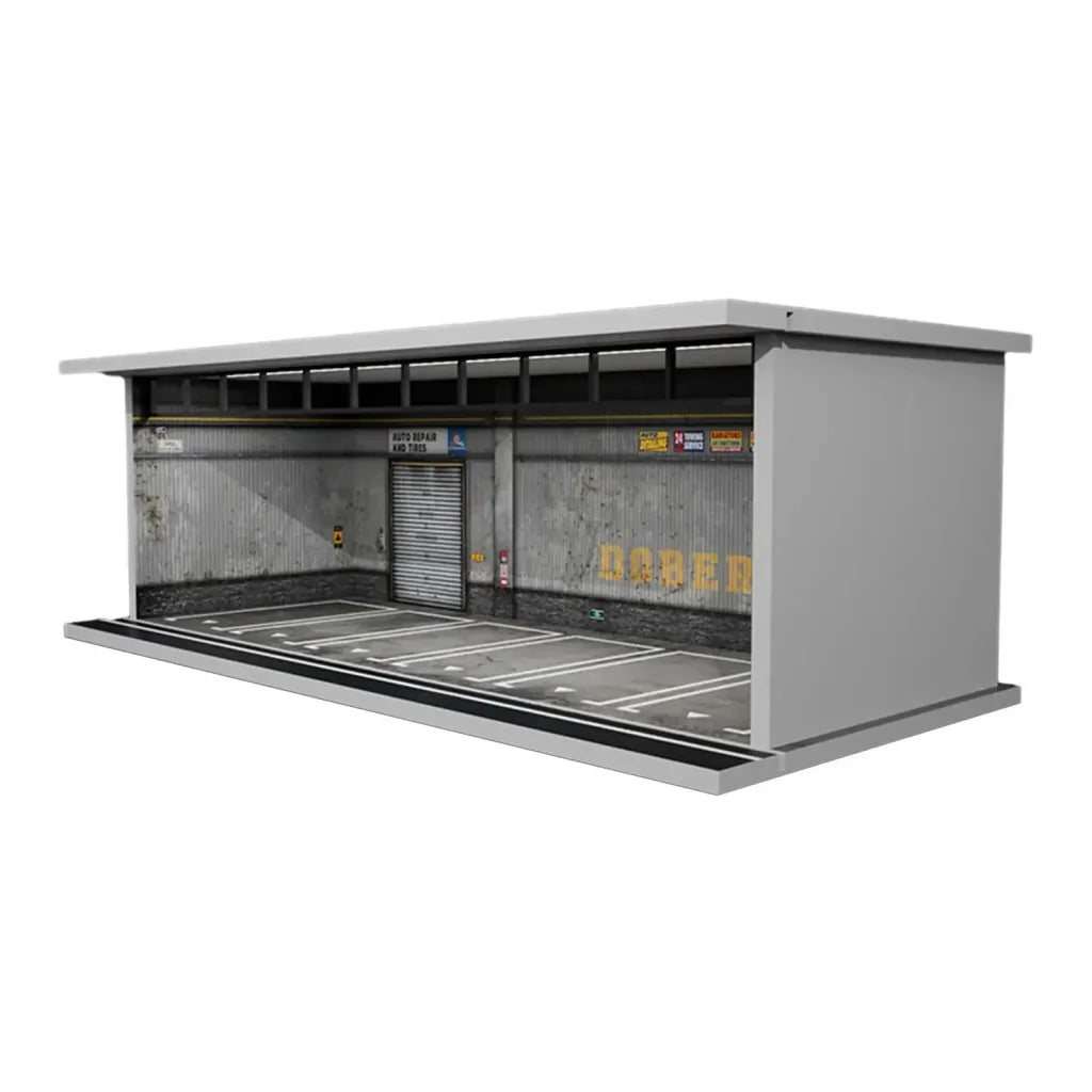 【Garage Display Case】:1/64 simulated parking lot scene with led light, which can be match with dolls, car models, photo props, diorama scene parking lot models etc.