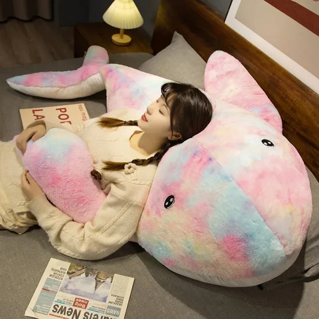 Big Huge Size Rainbow Flying Wings Whale Plush Toy Stuffed Colourful Fanstastic Whale Big Wings Throw Pillow for Kids Birthday
