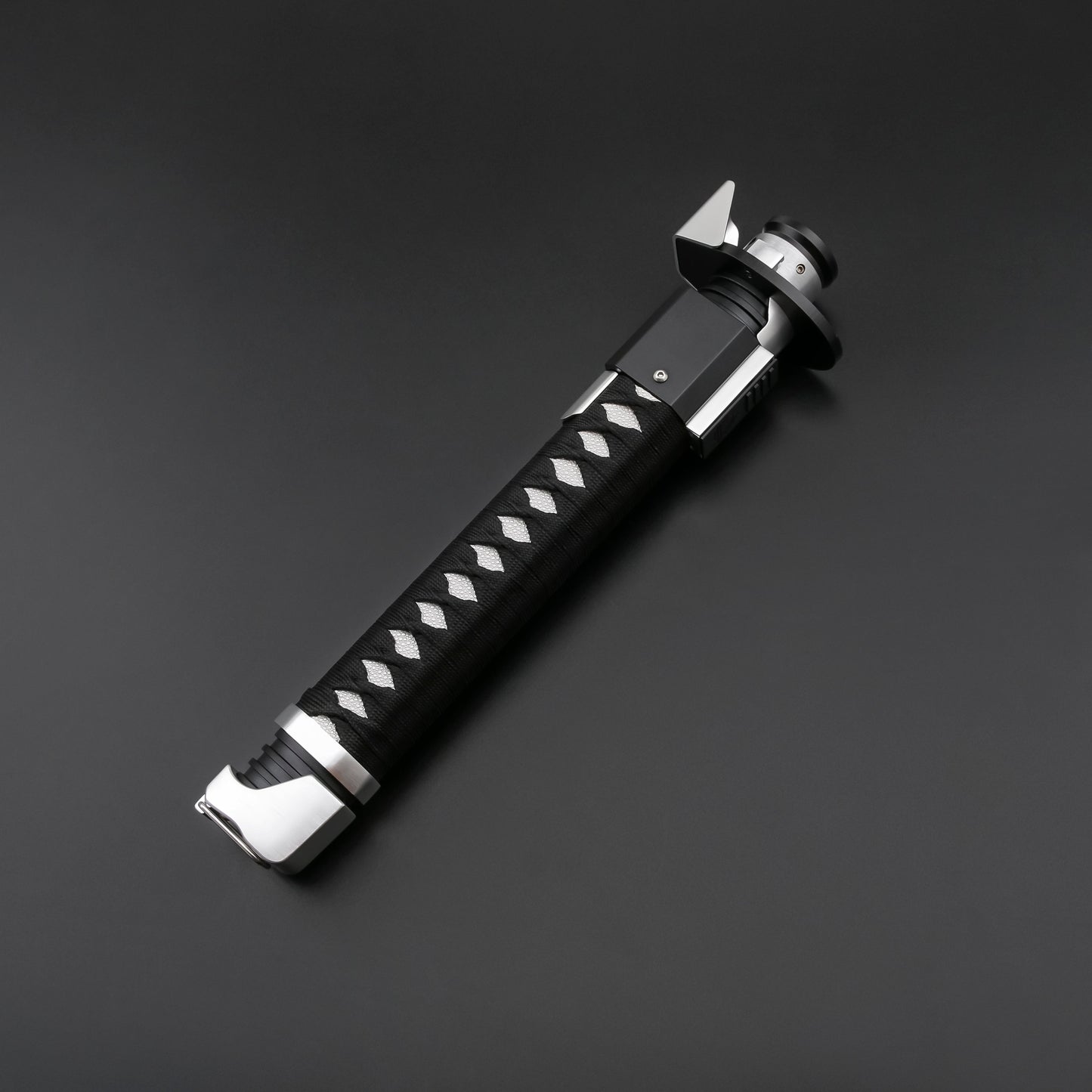 The SV-Ronin RGB/Neopixel Lightsaber is a katana-style weapon from the Visions, featuring an aggressive shroud, and a black-cloth-wrapped grip for increased control. It is equipped with Neopixel technology, making it a perfect choice for dueling and cosplay.