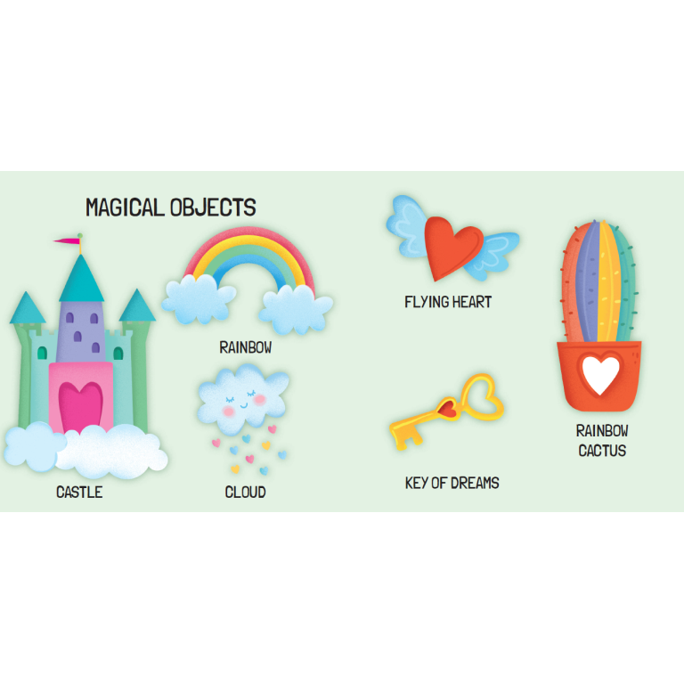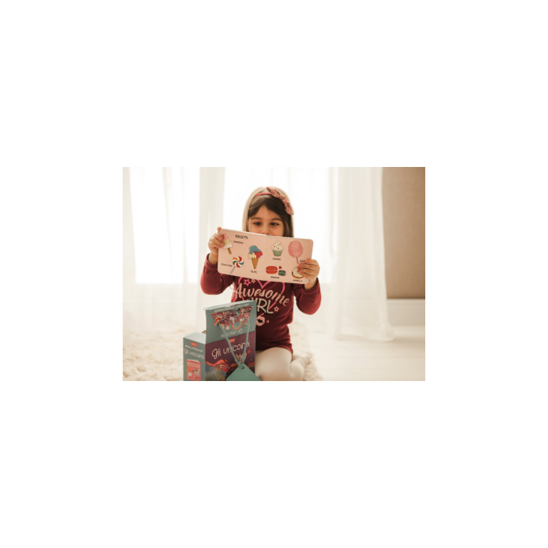 Discover the colorful world of unicorns! Flip through the booklet, build the puzzle, and learn to recognize the different elements that characterize the world of these magical creatures.