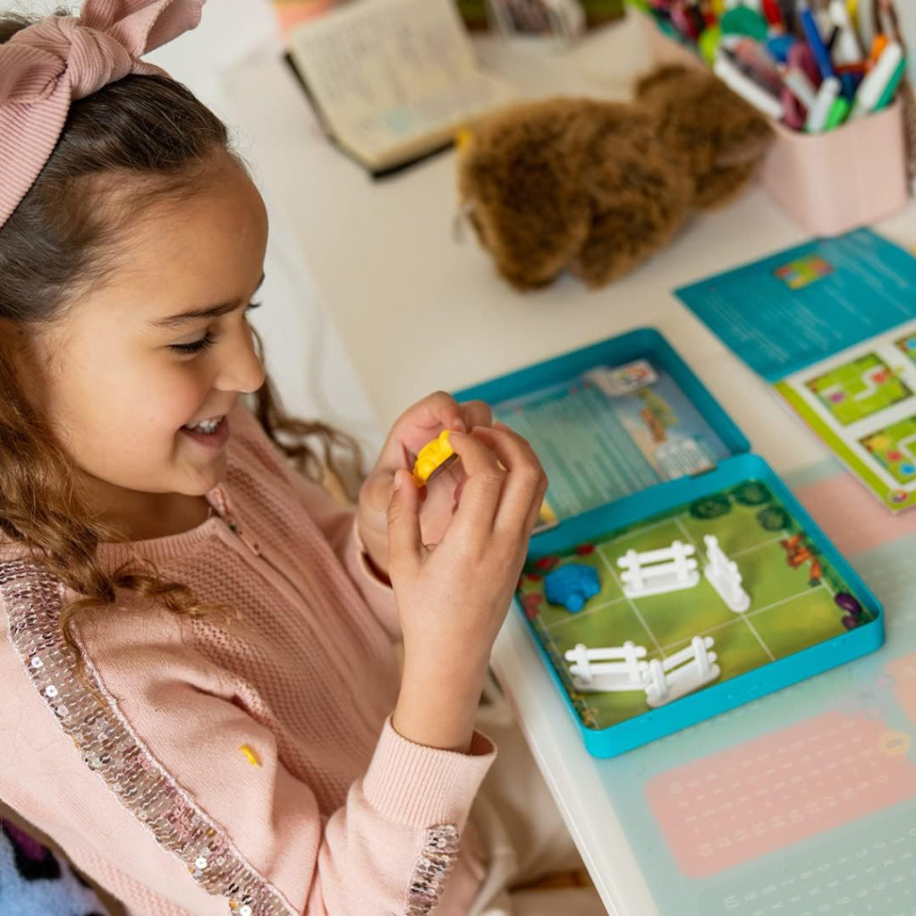 Omnomnom, the flowers and grass on the other side of the fence looks deliciously greener! Get these tortoises to their favourite-coloured meal. Who will get there faster: the tortoises or the hare? A fun sequential puzzle game that comes in a handy tin travel case. Don’t let these 48 challenges turn you turtle!