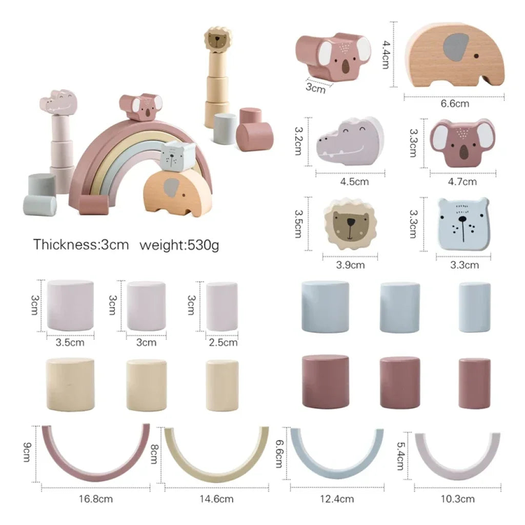 Wooden Baby Animal Balance Board Threading Stacking Toys